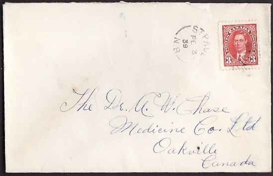 #10292 - 3c KGVI mufti - St Paul, NB single broken circle - Fe 3 1939Member of the Canadian Stamp Dealers Association and have been serving the collector since 1975.Canadian buyers - I will cover your GST/HST costs .