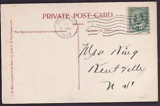 #10382 - 1c KEVII on p/c-St. John, NB-11 AM 1908- view side shows "Loyalist Cemetary, St. John, NB" - Member of the Canadian Stamp Dealers Association and have been serving the collector since 1975.Canadian buyers - I will cover your GST/HST costs .