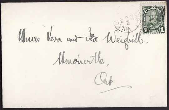 #10407 - 1c KGV arch - York County - Willowdale, Ontario - Dec 21 1932 - 1c franking pays the third class letter rate for Christmas cardsMember of the Canadian Stamp Dealers Association and have been serving the collector since 1975.Canadian buyers - I will cover your GST/HST costs .