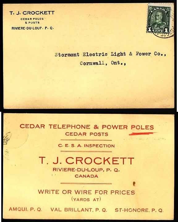#10408-1c KGV-ad card-Riviere Du Loup,Que- Fe 12 19? - 1c franking pays the third class rate -Member of the Canadian Stamp Dealers Association and have been serving the collector since 1975.Canadian buyers - I will cover your GST/HST costs .Â