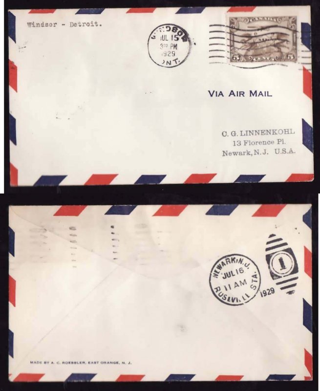#10915-5c airmail-First flight-Windsor to Detroit-Jul 15 1929-