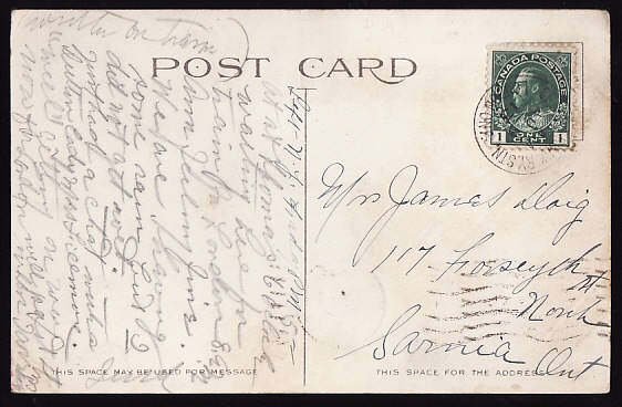 #11394 - 2c Admiral on postcard - Grand Trunk Ry Stn / London, Ont [ SN17 RF C ] - Au 9 1913 [ early date for hammer ]