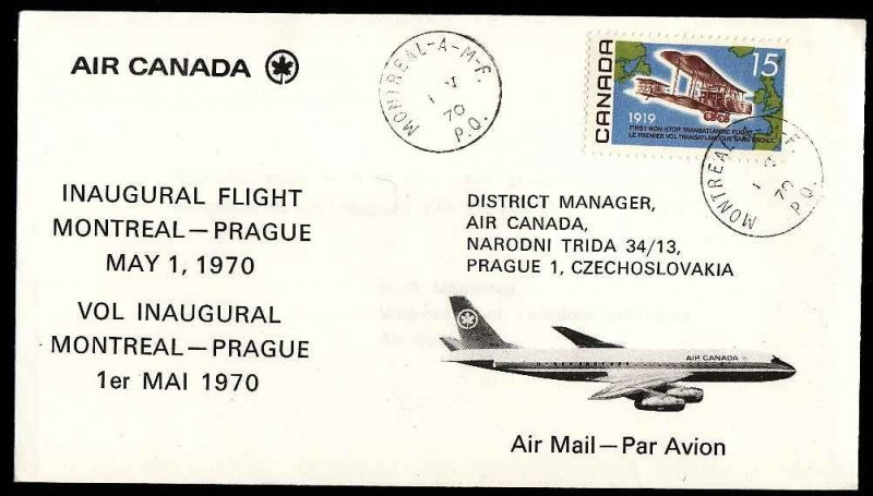 #12828 - 15c First Non-Stop Transatlantic flight on First Flight Montreal to Prague, Czk [ AAMC 7007a ] - Montreal AMF, PQ - 1 V 1970 - B/S Praha 2 V 1970 -