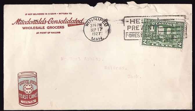 #13110 - 2c Confederation on illustrated advertising cover for MacDonald's Consolidated Wholesale Grocers - Winnipeg, Man - Sep 17 1917Member of the C...