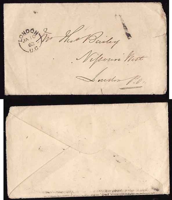 #13125 - Stampless drop letter - rated "1" black [ collect ] - Middlesex County - London, UC single broken circle - Ja 10 1862 -Member of the Canadian...