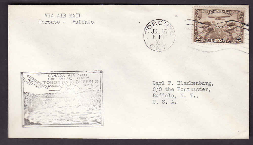 #13212 - 5c Airmail [ AAMC 2943] on first flight Toronto to Buffalo - Toronto, Ont - Jul 15 1929Member of the Canadian Stamp Dealers Association and h...
