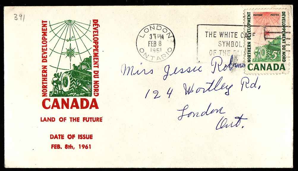 #13226-5c [#391]-Northern Development FDC-London,Ontario-Feb 8 1961-Member of the Canadian Stamp Dealers Association and have been serving the collect...