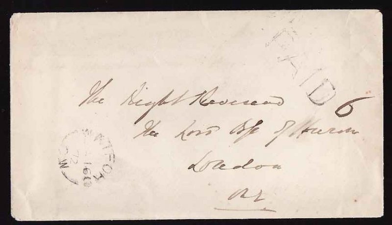 #13419 - Stampless-double weight"PAID 6"-Lambton Cnty-Watford,CW single broken circle-Ja 16 1872-B/S London,Ont-Ja 17 1872-Member of the Canadian Stam...