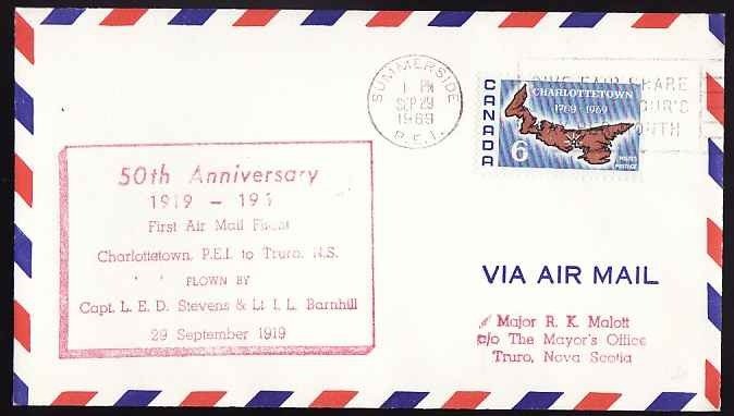 #13438 - 6c Charlottetown [ AAMC A6960 ] 50th anniversary [ red cachet ] - commemorating the first airmail flight between Charlottetown, PEI & Truro, NS - Summerside, PEI - Sep 29 1969