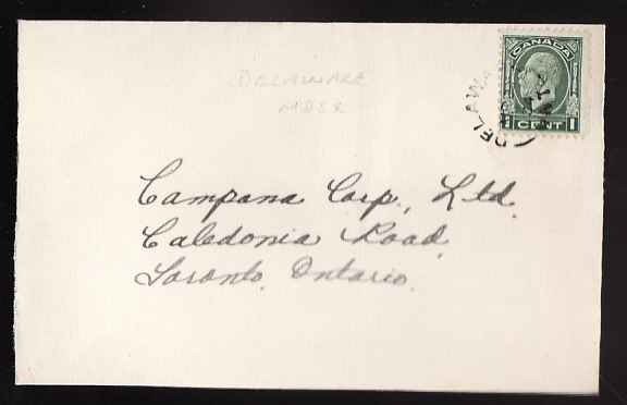 #13531 - 1c KGV medallion - Middlesex County - Delaware, Ont - Mr 29 1934 single broken circle - 1c franking pays the printed matter rateMember of the...