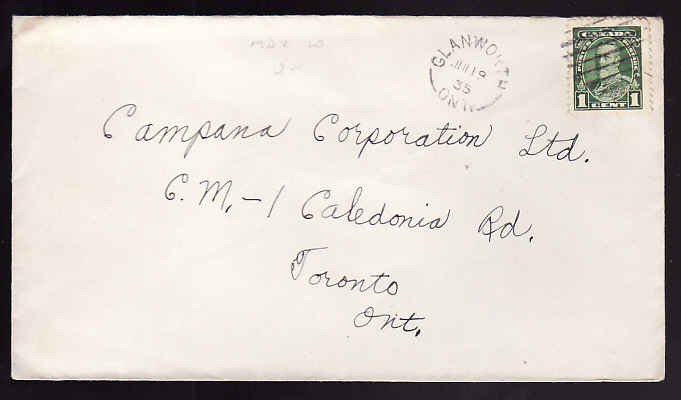 #13534 - 1c KGV pictorial - Middlesex County - Glanworth, Ont - Jul 19 1935 single broken circle -1c franking pays the printed matter rateMember of th...