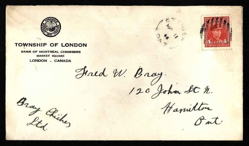 #9418 - 4c KGV scroll-York Cnty-Toronto,Ont-Sep 12 1930-4c franking pays the double domestic letter rate-unusual stamp on cover