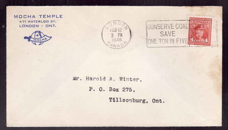 #13744 -Illustrated Ad-Mocha Temple-Middlesex Cty-London,Ont-Feb 12 1946- Canadian Stamp Dealers Association and have been serving the collector sinc...