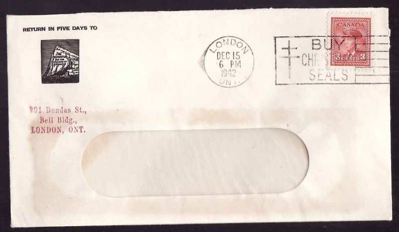 #10010 - 2c meter paying drop letter rate-Middlesex County-London,Ont-Jul 29 1937-advertising on back - Member of the Canadian Stamp Dealers Association and have been serving the collector since 1975.Canadian buyers - I will cover your GST/HST costs .