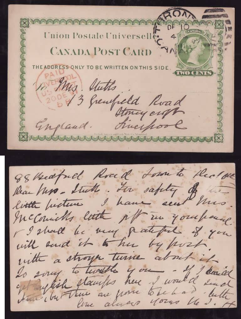 #10207-1c QV card-Durham Cnty-Newcastle,Ont single broken circle [ 21cm , arcs 8 cm , 7 cm - unreported (?)- Ap 7 1873 Member of the Canadian Stamp Dealers Association and have been serving the collector since 1975.Canadian buyers - I will cover your GST/HST costs .