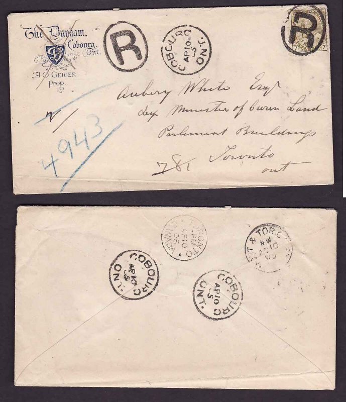 #14107-7c-regd Hotel advert-The Dunham-Cobourg,Ont-Ap 10 1905-B/S Mont & Tor G.T.Ry-Ap 10 1905-Member of the Canadian Stamp Dealers Association and ha...
