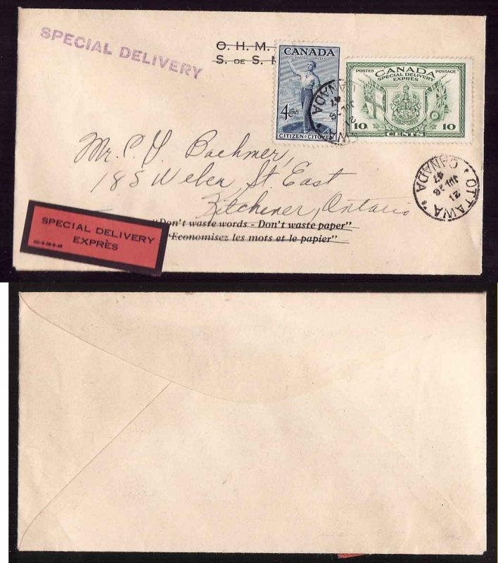 #14184–10c Special Delivery+4c Special Delivery Express sticker #SD-8-28-8-46-Member of the Canadian Stamp Dealers Association and have been serving...