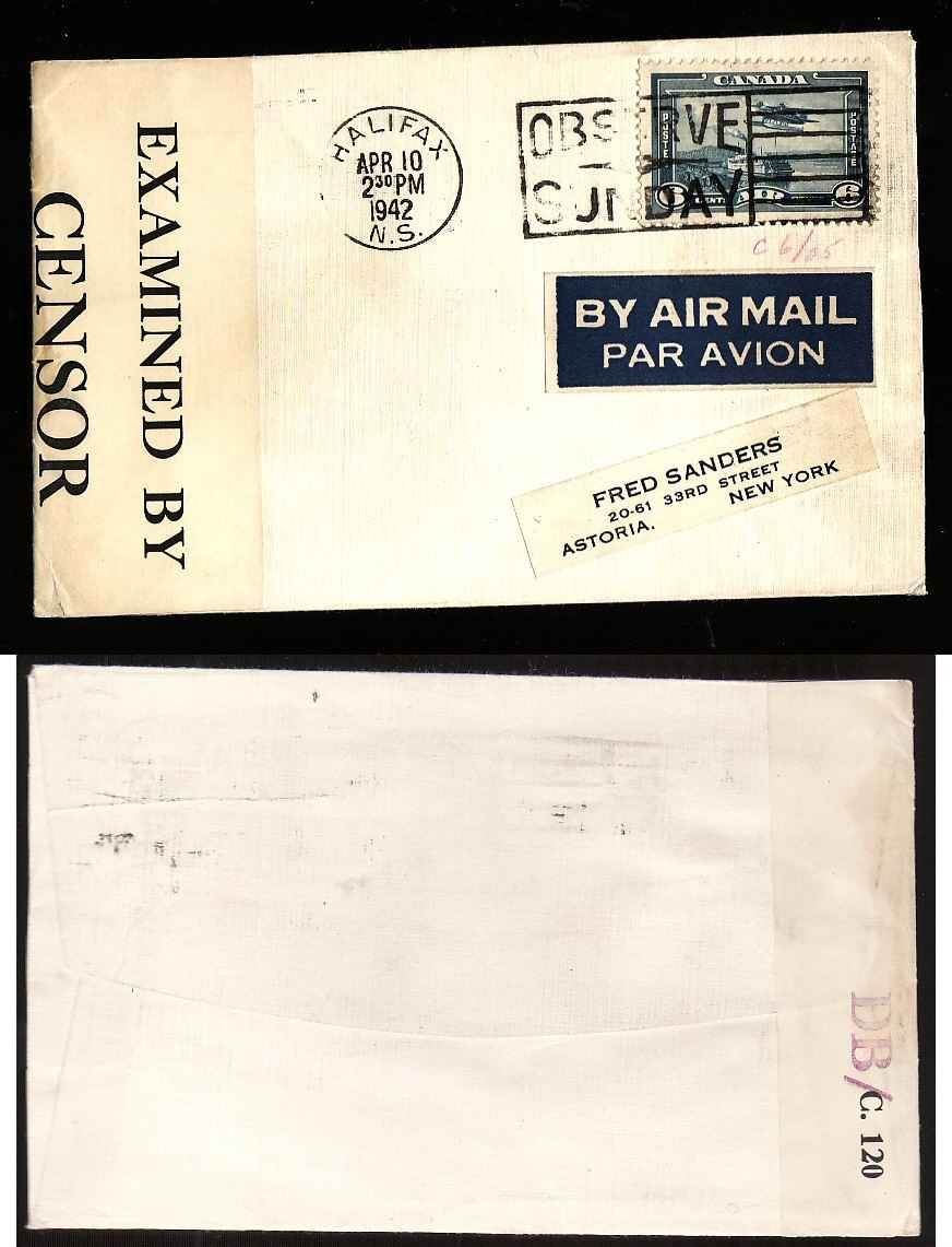 #14205 – 6c airmail-censored DB/C.120-Halifax,NS-Apr 10 1942Member of the Canadian Stamp Dealers Association and have been serving the collector sin...