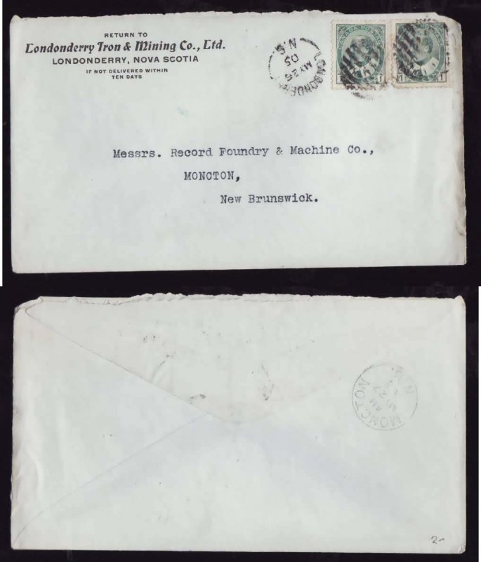 #14350- 1c(2) KEVII-Londonderry, NS-My 26 1905-CC Londonderry Iron & Mining Co. Ltd.-Member of the Canadian Stamp Dealers Association and have been se...