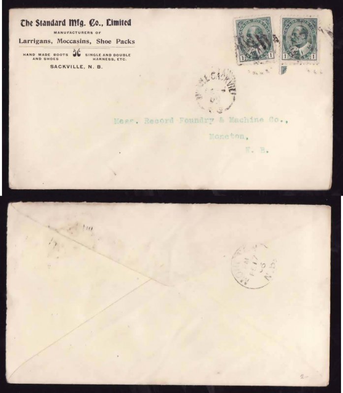 #14351- 1c(2) KEVII-Middle Sackville, NS-Fe 17 1906-CC The Standard Mfg. Co. Limited- Member of the Canadian Stamp Dealers Association and have been ...
