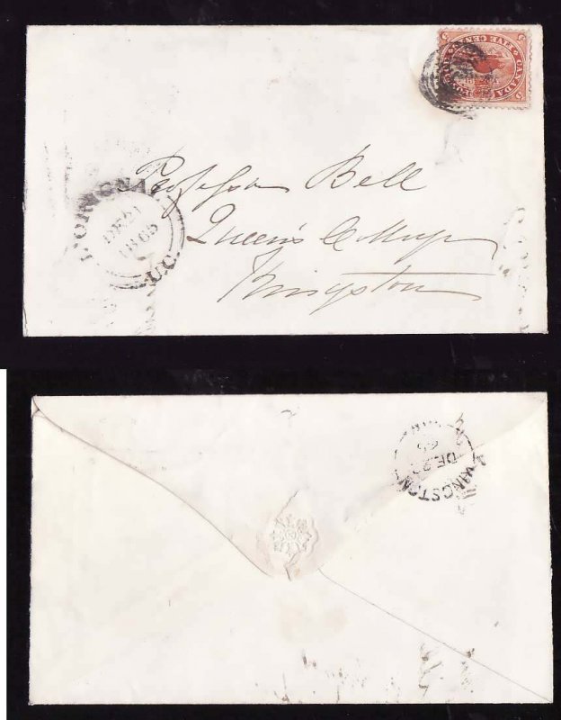 #14368-5c Beaver-addressee Robert Bell-double broken circle-L'Orignal,UC-De 21 1865-B/S Kingston,CW- De 22 1865-Member of the Canadian Stamp Dealers A...