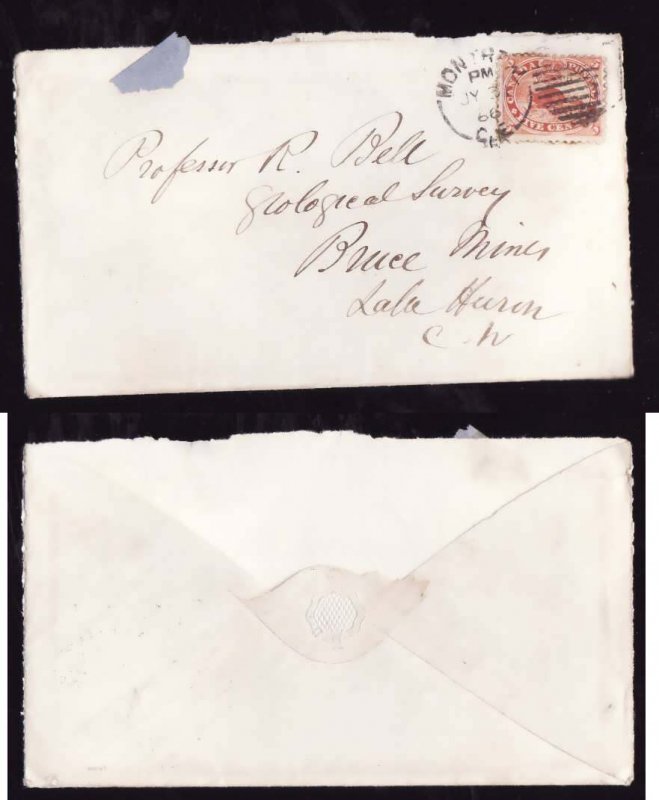 #14375-5c Beaver-addressee Robert Bell-duplex cancel-Montreal,CE-Jy 3 1866-Back flap missing-Geological Survey- Member of the Canadian Stamp Dealers ...
