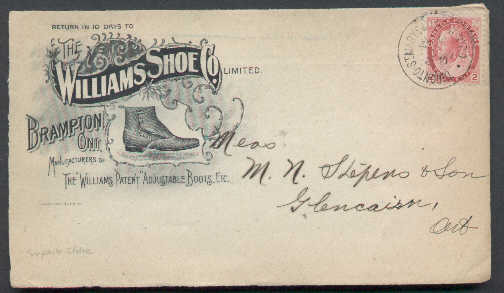 #4381-2c Numeral-front only-Toronto St. Mary's & London Rypo[O 397 RF 85 ]-No 16 1899-Illustrated advertising Williams Shoe Co. -