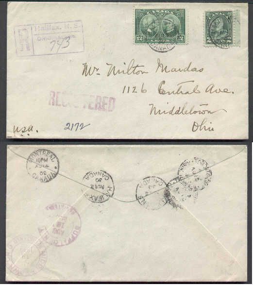 #4384-12c Laurier & MacDonald+2c KGV double weight reg'd-Halifax,NS-Au 13 1930-Member of the Canadian Stamp Dealers Association and have been serving the collector since 1975.Canadian buyers - I will cover your GST/HST costs .