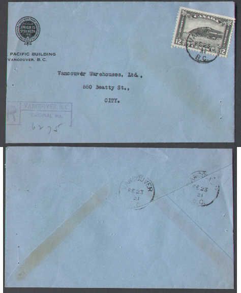 #4385-12c Quebec Citadel reg'd drop-Vancouver, BC-Fe 23 1931-[10c]+ drop rate [2c]-Member of the Canadian Stamp Dealers Association and have been serving the collector since 1975.Canadian buyers - I will cover your GST/HST costs .