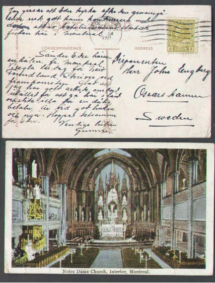 #4431 - 4c Admiral on p/c-Montreal,PQ-Oct 8 1928-4c UPU rate to SwedenMember of the Canadian Stamp Dealers Association and have been serving the collector since 1975.Canadian buyers - I will cover your GST/HST costs .