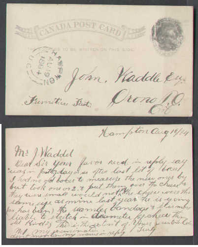 #9859 - 1c QV postcard uprated with 1c small queen paying 2c post card rate to the US [ rate in effect July 1 1873 to Jan 1 1875 ] - Fredericton Junction , NB - Sp 15 1874 Member of the Canadian Stamp Dealers Association and have been serving the collector since 1975.Canadian buyers - I will cover your GST/HST costs .