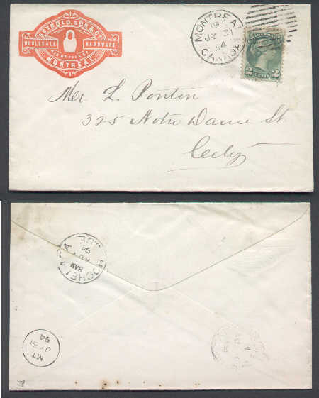 #4684-2c Small Queen-drop letter-Montreal,Canada-Jy 31 1894 - Illustrated advertising - Seybold , Son & Co - wholesale hardware Member of the Canadia...