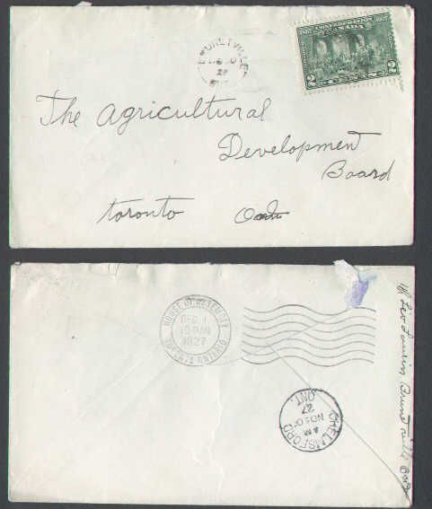 #5073 - 2c Confederation - Sudbury District - Brunetville , Ont - No 30 1927- B/S House of Assembly , Toronto -Member of the Canadian Stamp Dealers As...