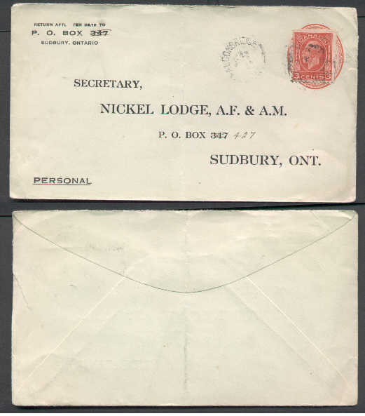 #5074 - 3c KGV Medallion-Sudbury District-Falconbridge,Ont single broken circle-Jan 24 1934Member of the Canadian Stamp Dealers Association and have...