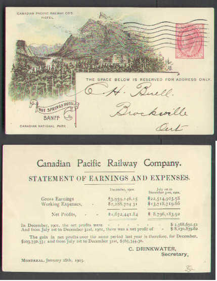 #5111 - 1c Leaf-Hot Springs Hotel,Banff-(CPR 35A)-Montreal - Jan 30 1903 -Member of the Canadian Stamp Dealers Association and have been serving the c...