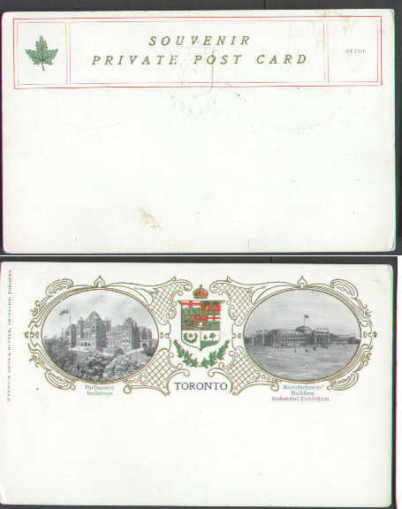 #5437 unused patriotic-The Parliament Buildings & Manufacturers' Building Industrial Exhibition , TorontoMember of the Canadian Stamp Dealers Associat...