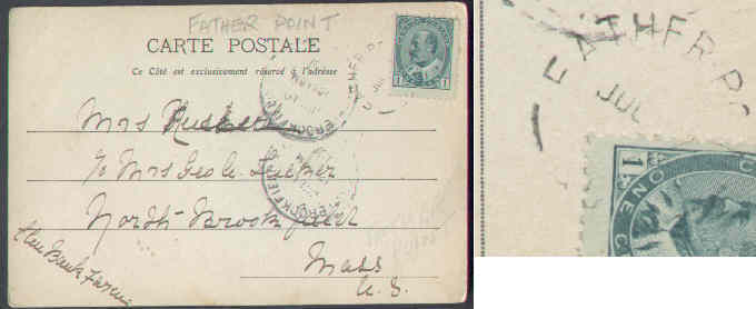 #5652 - 1c Edward-Father Point,Que-Jul 10 1907-viewside shows Romouski Seminaire - Member of the Canadian Stamp Dealers Association and have been ser...