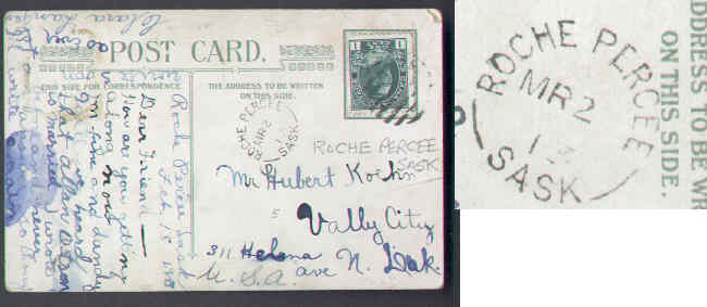 #5667 - 1c Admiral - Roche Percee , Sask - Mr 2 1913 Member of the Canadian Stamp Dealers Association and have been serving the collector since 1975....
