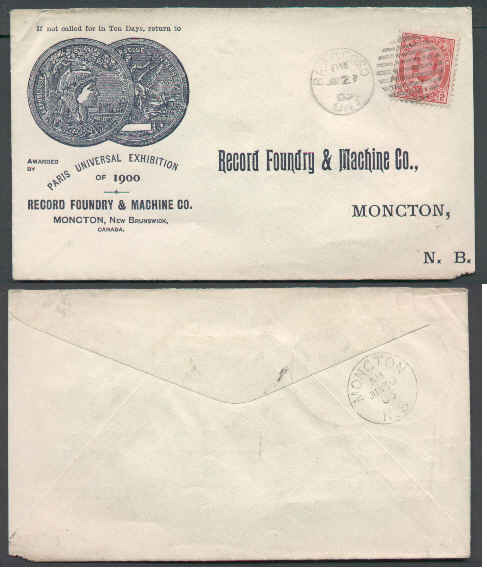 #6048 - 2c Edward - Simcoe Cnty-Bradford,Ont-Ju 27 1905 - Illustrated advertising card for Record Foundry & Machine Co.Member of the Canadian Stamp De...