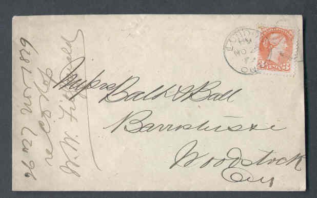 #9856 - 3c Small Queen - Middlesex County - London , Ont - No 26 1879Member of the Canadian Stamp Dealers Association and have been serving the collector since 1975.Canadian buyers - I will cover your GST/HST costs .