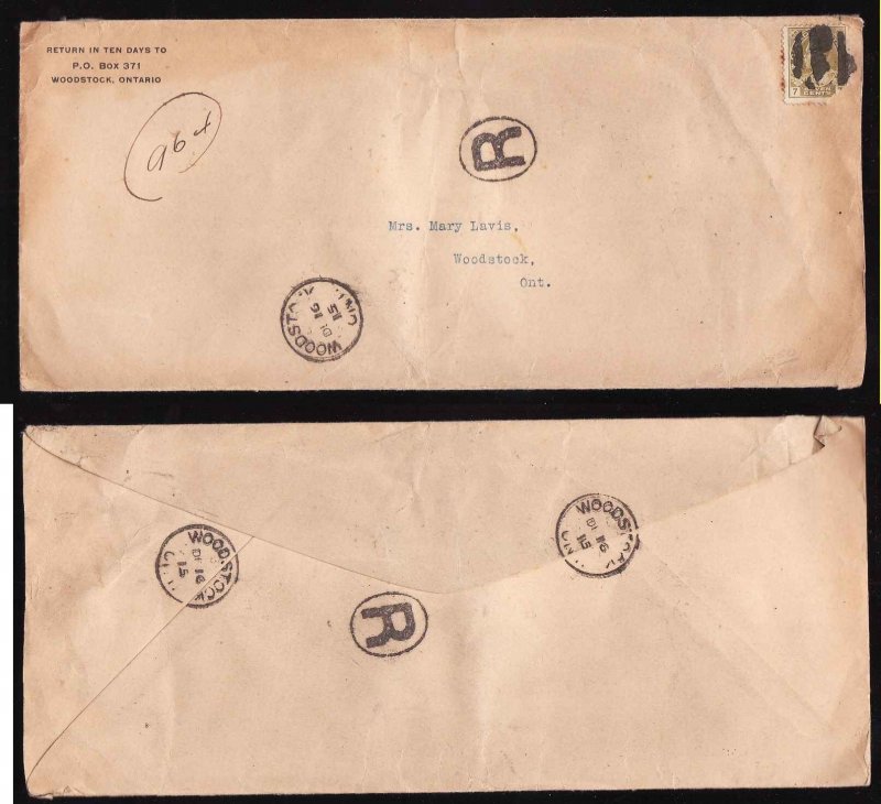 Scan #12541 - 3c Admiral strip of 5 registered to USA - Toronto Ont, Spadina Ave cds - Au 29 1922 - CC "Marks Stamp Company" - 15c franking pays the 10c registration rate + 5c double letter rate to USA [ 3c + 2c ] -