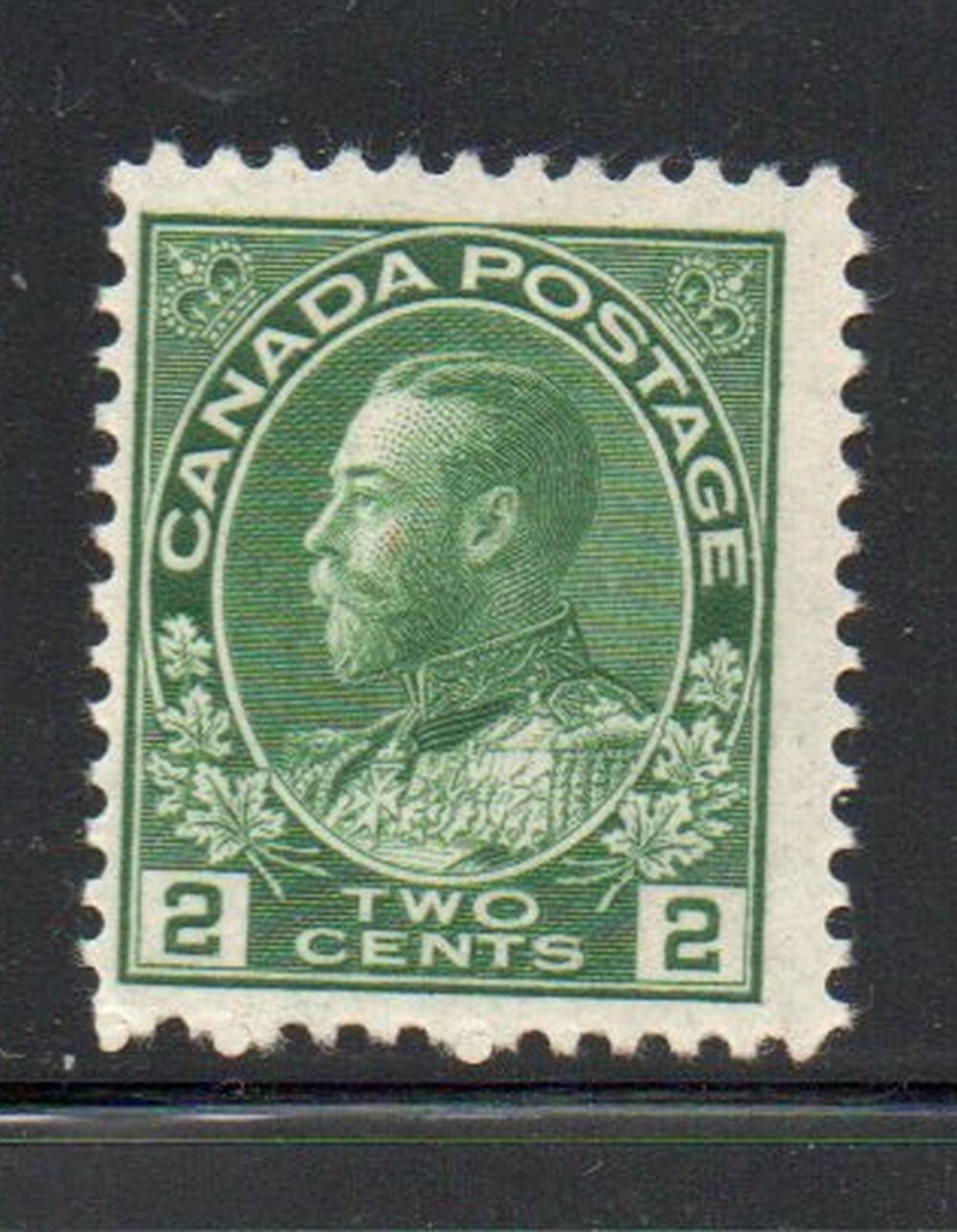 Canada Scott & Unitrade Catalogue number 107 1922 2 cent yellow green George V Admiral issue stamp .Mint, fine original gum hinged .Canadian Customers - no added GST/HSTUS customers - No tariffs on stamps sent by meMember Canadian Stamp Dealers Association20-8-26.jpg