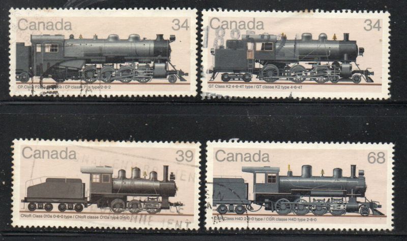 Canada Scott & Unitrade Catalogue number 1071-1074 1985 Steam Railway Locomotives stamp set .