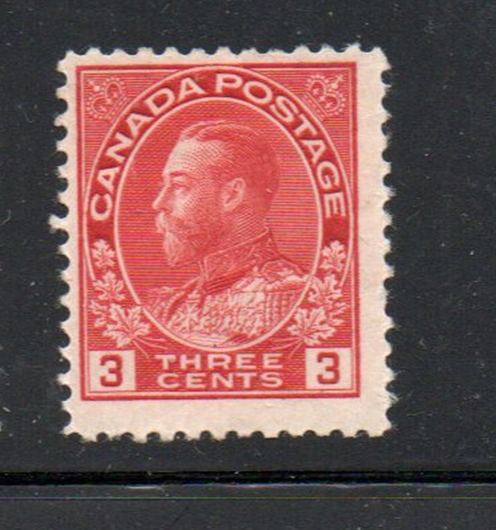 Canada Scott & Unitrade Catalogue number 109 1923 3 cent carmine George V Admiral issue stamp .Mint, fine original gum hinged .Canadian Customers - no added GST/HSTUS customers - No tariffs on stamps sent by meMember Canadian Stamp Dealers Association20-8-28.jpg