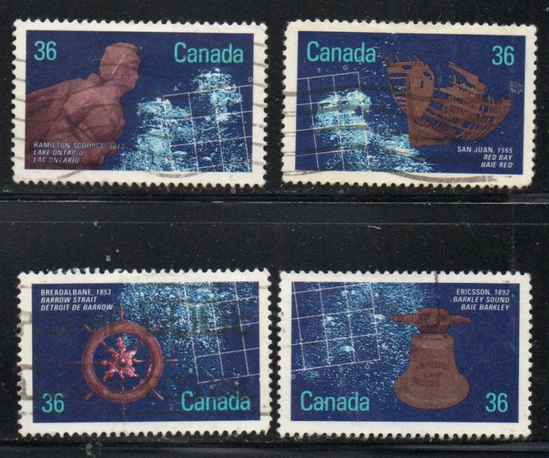 Canada   Scott & Unitrade  Catalogue number 1141-1144 1987 Shipwrecks stamp set  .Used, fine to very fineMember Canadian Stamp Dealers AssociationCanadian Customers - No added GST/HST .US customers - There is no tariff on postage stamps that I send to you.