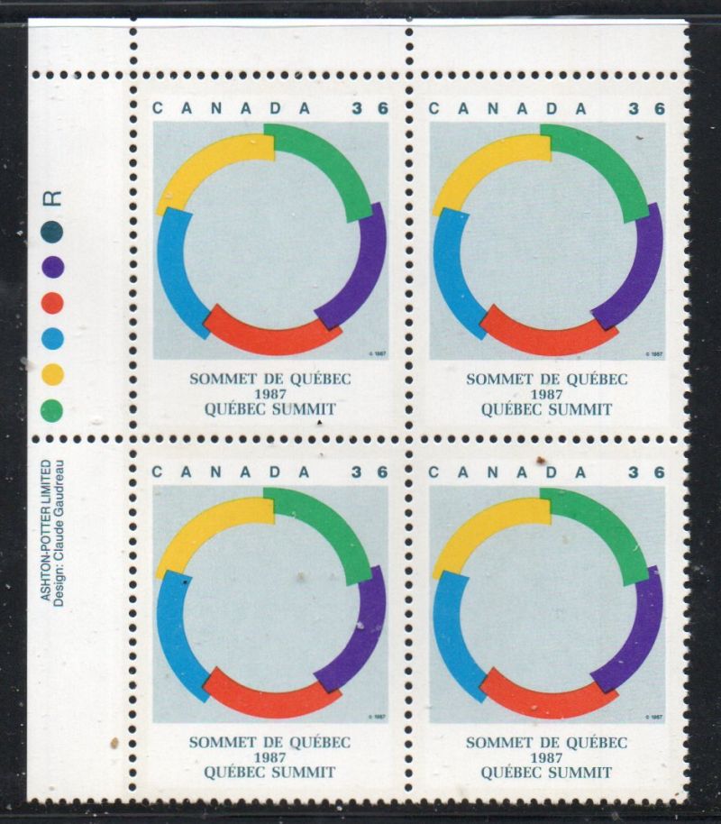 Canada Sc 1146 1987 36c Quebec Summit stamp UL Inscription Bl of 4 mint NH