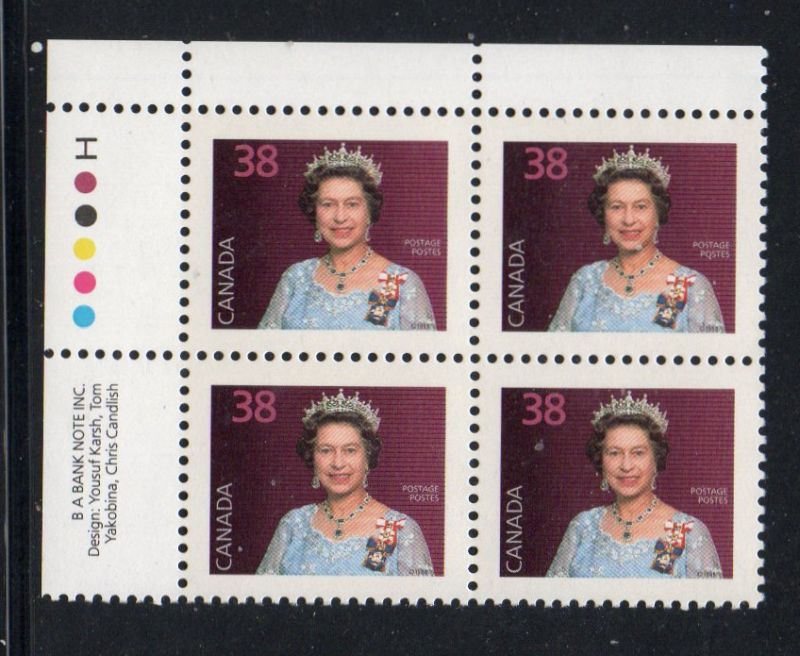 Canada Scott Catalogue number 1164 1988 38 cent QE II Upper Left Inscription Block of 4, B.A. Bank Note Ibc .