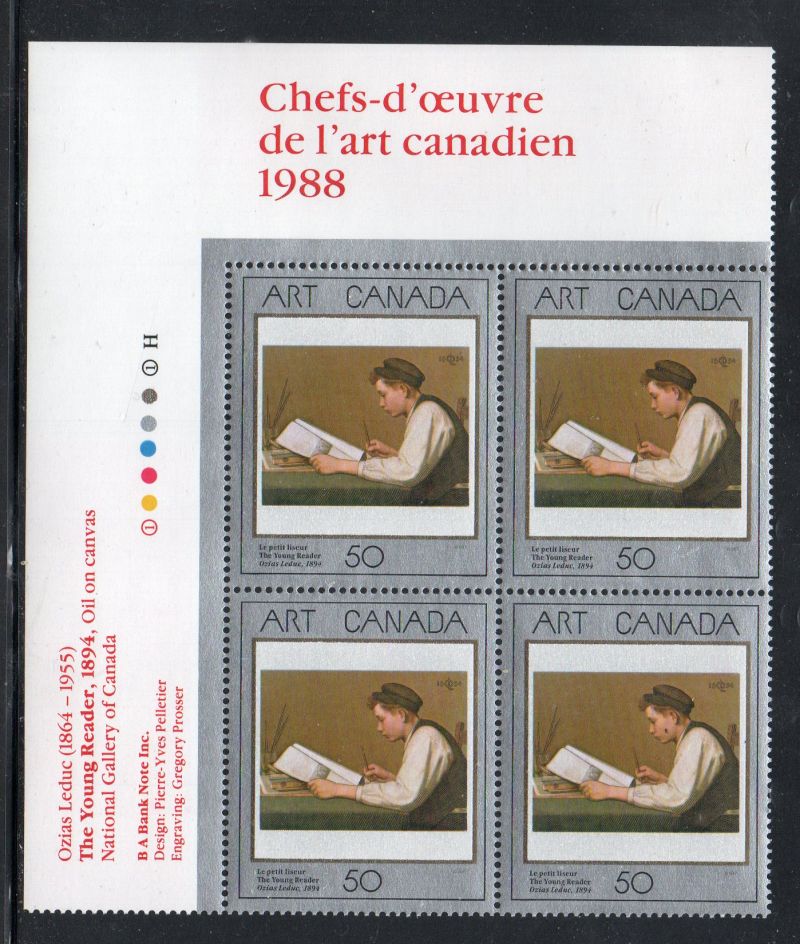 Canada Sc 1203 1988 50 c Art stamp UL Inscription Block of 4 mint NH
