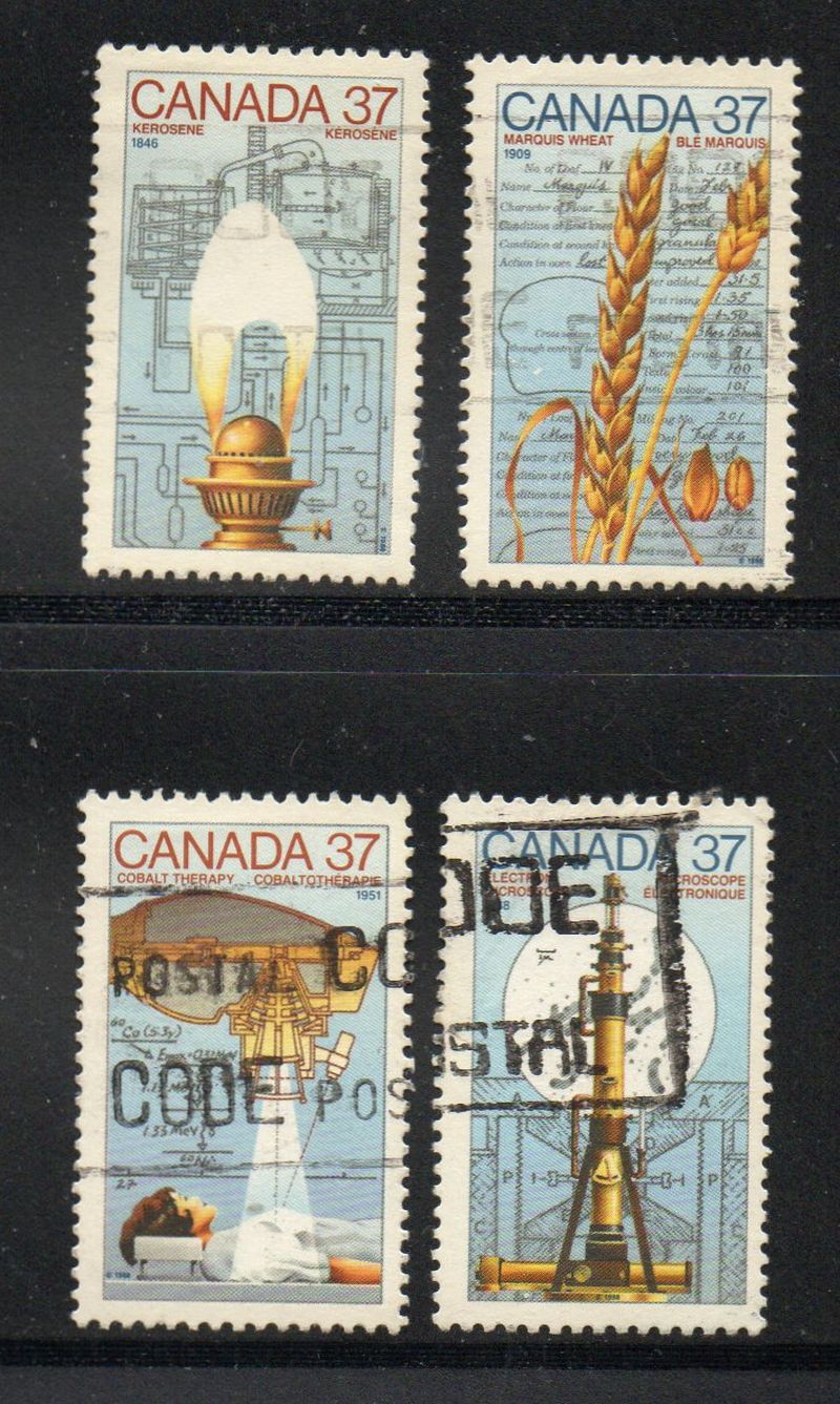 Canada Scott & Unitrade Catalogue number 1206-1209 1988 Canadian Inventions stamp set .Used, fine to very fine .Canadian Customers - no added GST/HSTUS customers - No tariffs on stamps sent by meMember Canadian Stamp Dealers Association