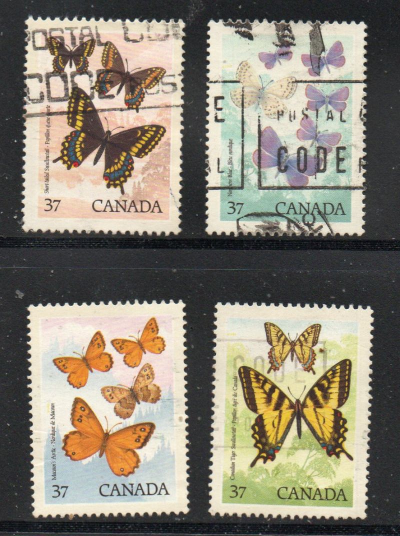 Canada Scott & Unitrade Catalogue number 1210-1213 1988 Butterflies stamp set .Used, fine to very fine .Canadian Customers - no added GST/HSTUS customers - No tariffs on stamps sent by meMember Canadian Stamp Dealers Association